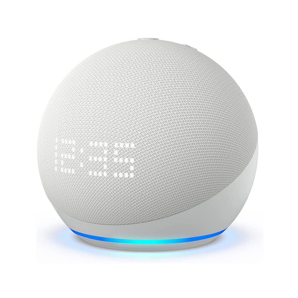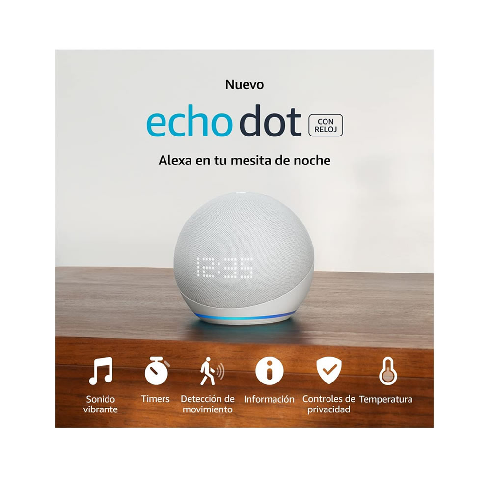 - ALEXA TE AYUDA CON GUSTO – Pídele a Alexa que muestre el clima y títulos de canciones, que ponga timers, que responda tus preguntas e incluso que te cuente un chiste. ¿Quieres dormir unos minutos más por la mañana? Toca ligeramente la parte superior del Echo Dot con reloj para posponer tu alarma.