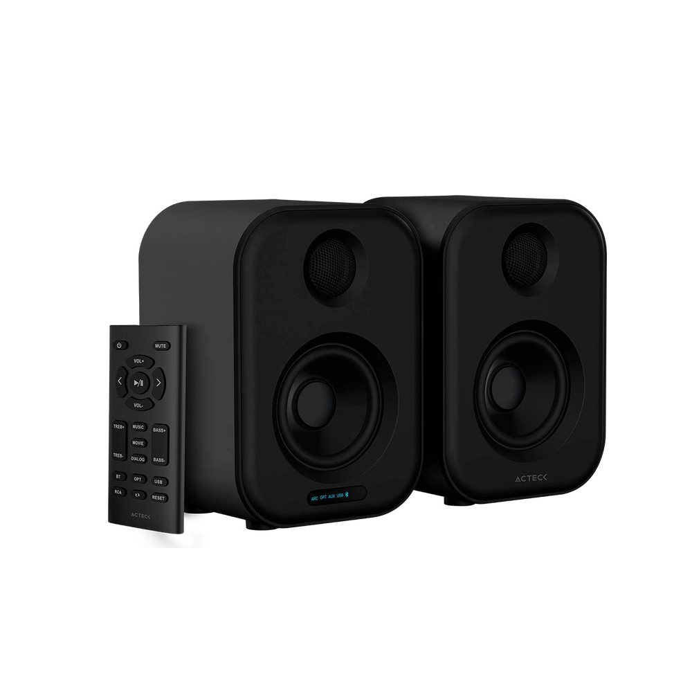 Bocinas Bluetooth Dynamic Exact BS650 Elite Series, Potencia 50w RMS, Bajo Profundo, Conexiones: Bluetooth 5.0, Aux RCA, Óptica, USB-A, Alimentación: 100-240 Va.c., 50/60 Hz, 0.8 A, Control Remoto, Color Negro. AC-935890