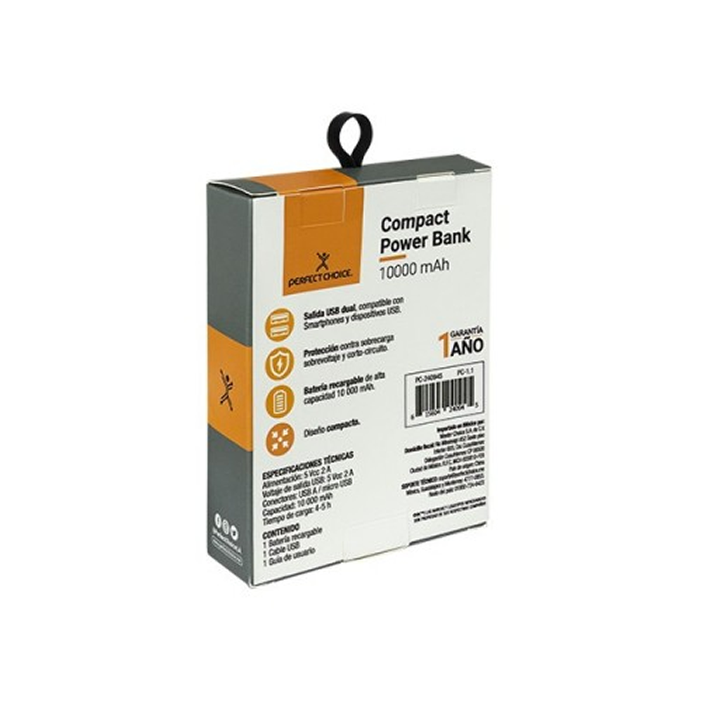 Power Bank 10000 MAH, conector USB A y micro PERFECT CHOICE PC-240945, Negro, 10000 mAh, 5 V