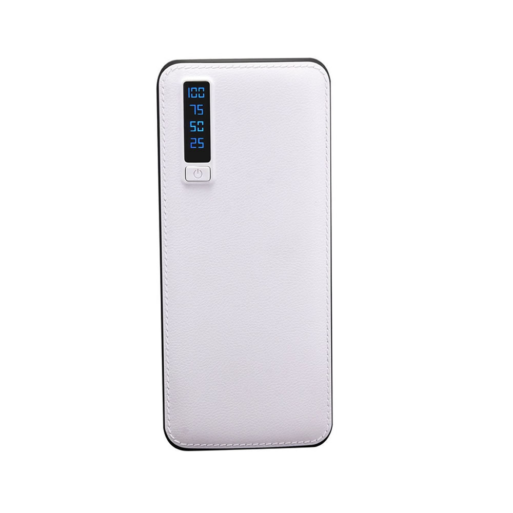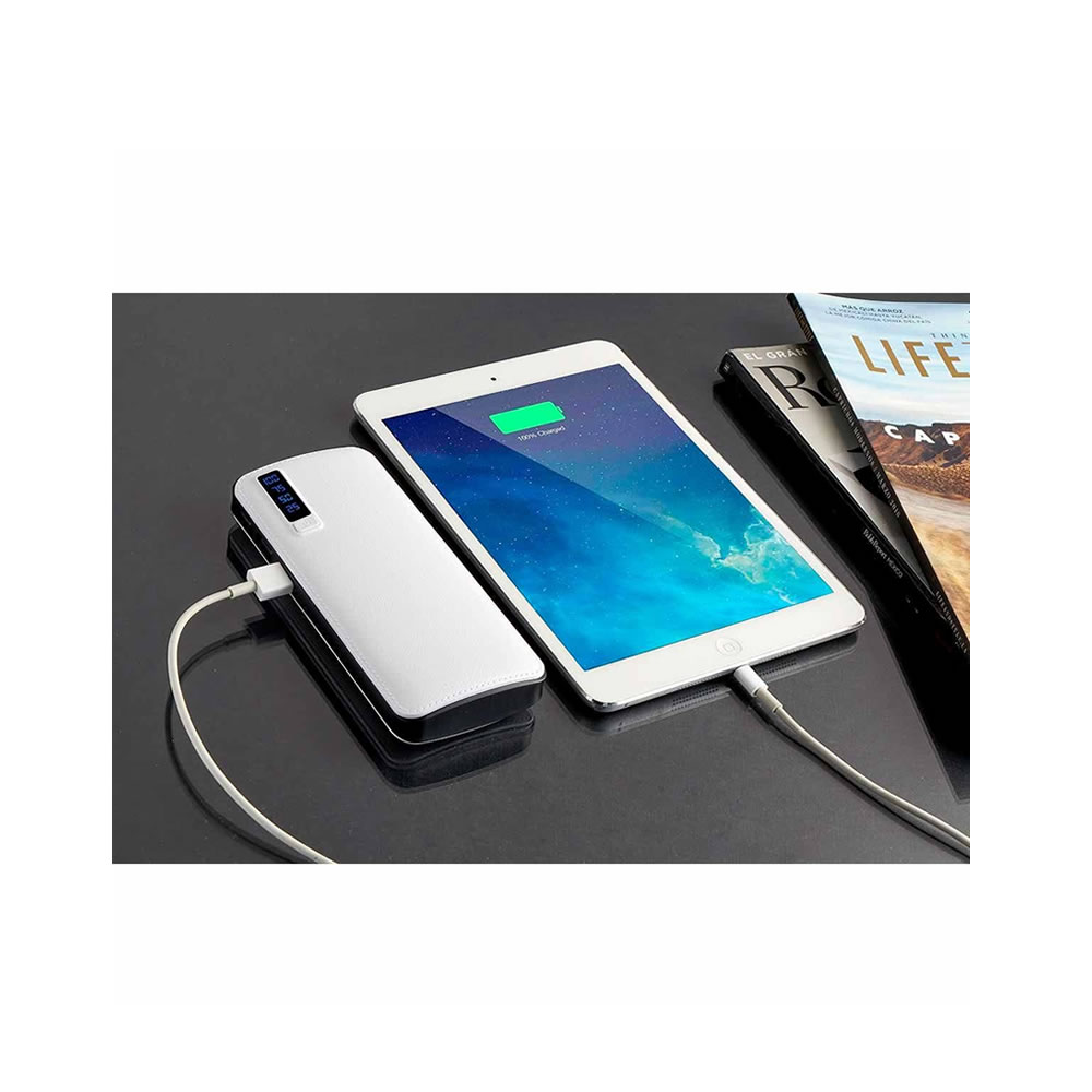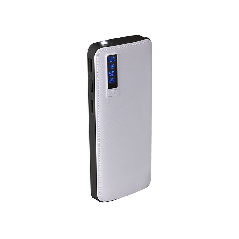 Batería auxiliar para smartphone con 3 salidas de carga, capacidad 7,500 mAh. Incluye cable cargador compatible con USB y micro USB. Display indicador de batería.